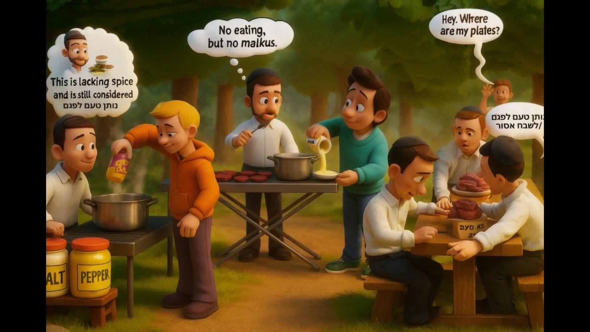 Rebbe Yochanan said: כל שטעמו וממשו אסור ולוקין עליו – any mixture which includes both [the forbidden food’s] flavor and substance is forbidden, and one incurs malkus for eating it. וזהו כזית בכדי אכילת פרס – And this is where the הלכה למשה מסיני applies, that one who eats an olive’s volume in the time required to eat a פרס (“half” of a loaf large enough for two meals) receives malkus (Rebbe Yochanan is teaching that this also applies to a prohibited food mixed into permitted food). טעמו ולא ממשו – If the mixture only includes [the forbidden food’s] flavor, but not its substance (e.g., melted cheilev fell into a pot of food), אסור ואין לוקין עליו – it is prohibited, but one does not incur malkus for eating it. ואם ריבה טעם לפגם מותר – But if it added flavor that was to the mixture’s detriment, it is permitted to eat. The Gemara explains that Rebbe Yochanan used the expression “added” detrimental flavor, instead of "נתן" – gave detrimental flavor, to teach: דאע"ג דאיכא מילי אחרנייתא דפגמה בהדיה – that even though there are other things that harm the mixture’s flavor with it, such as if the mixture has too little or too much salt, the mixture is still permitted. This teaches that the halachah follow the second version of Reish Lakish cited above.