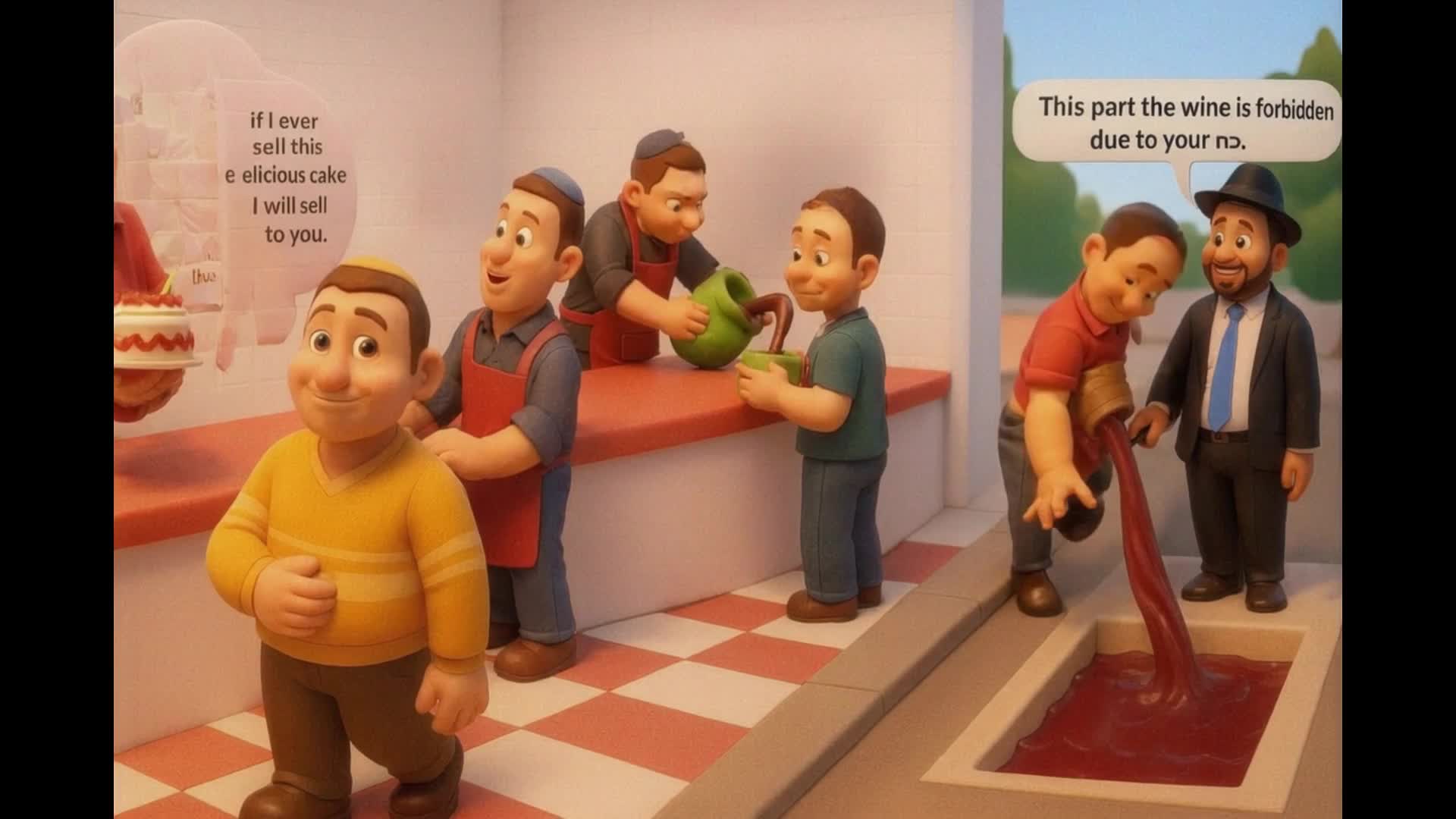 The Gemara attempts to prove that נצוק is a חיבור from a Baraisa, which states that if one pours wine from a barrel into a wine pit, קילוח היורד משפת חבית למטה אסור – the flow descending from the barrel’s edge and downward is forbidden. This proves that the midair stream is connected to the pit below, which contains יין נסך!? Rav Sheishess answered that the Baraisa is בעובד כוכבים המערה דאתי מכחו – with an idolator who is pouring the wine, because it is moving through [the עכו"ם’s] force, which prohibits the wine (not because of יין נסך in the pit). The Gemara asks that if so, the wine in the barrel should also be prohibited, since that wine was also moved by the עכו"ם!? In answers: כח דעובד כוכבים מדרבנן הוא דאסיר – wine moved by an עכו"ם’s force is prohibited only Rabbinically. ההוא דנפק לבראי גזרו ביה רבנן – Therefore, regarding wine which went outside the barrel, the Rabbis decreed to prohibit it, ההוא דלגואי לא גזרו ביה רבנן – but regarding that which remained inside the barrel, the Rabbis did not decree to prohibit it.