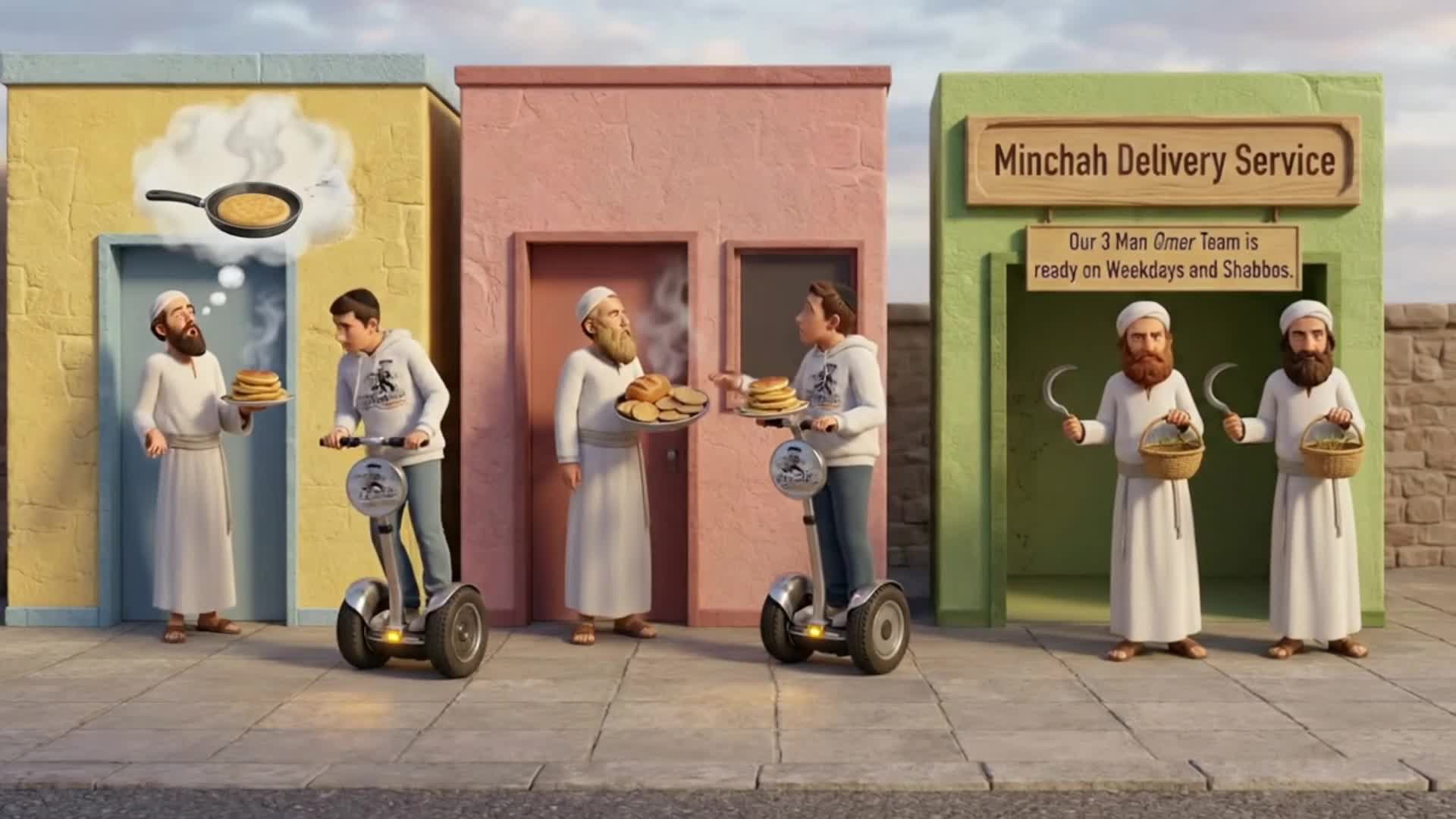 The sixth Perek begins: רבי ישמעאל אומר – Rebbe Yishmael says: עומר היה בא בשבת משלש סאין – the omer was brought on Shabbos from three סאה of barley, sifted to one עשרון of fine flour, ובחול מחמש – but when brought during the week, it was brought from five סאה of barley. But the Chochomim say that whether on Shabbos or a weekday, it was always brought from three סאה. Rebbe Chanina S’gan Hakohanim says that on Shabbos, it was cut by one person with one sickle and put into one basket (to minimize מלאכה), but during the week, it was cut by three people, and put into three baskets, using three sickles. The Chochomim say that it was always cut in this second manner. The Gemara explains that the Rabbonon hold that three סאה suffice for an עשרון of fine flour, but wonders why Rebbe Yishmael requires different amounts for Shabbos and weekdays. Rava explains that he holds עשרון מובחר בלא טירחא אתי מחמש – an issaron of choice flour comes from five סאה without effort, and from three סאה with effort (i.e., more sieving). Therefore, during the week, five סאה are used, דהכי שביחא מילתא – because this is the better [flour]. On Shabbos, three סאה are used to reduce the number of מלאכות required (although it will require more sieving).