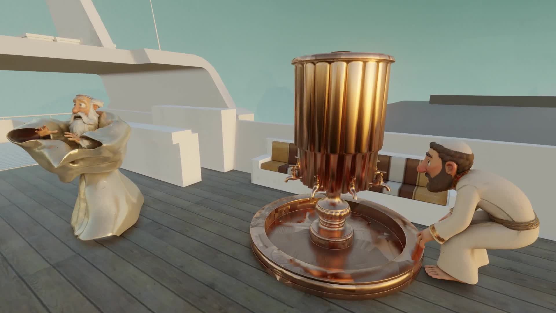 A Baraisa describes the procedure of קידוש ידים ורגלים. The Tanna Kamma says: מניח ידו הימנית על גבי רגלו הימנית – he places his right hand upon his right foot, and his left hand upon his left foot, ומקדש – and he sanctifies them by releasing water from the כיור onto both hands and feet simultaneously. Rebbe Yose bar Rebbe Yehudah says he places his hands on top of each other, which he places on top of his feet which are placed on top of each other, and is מקדש. The Rabbonon told him: הפלגתה אי אפשר לעשות כן – You have exaggerated; it is impossible to do so without falling! Rav Yosef explains: וחבירו מסייעו – he washes whiles his colleague supports him so he does not fall. Abaye explains the Tannaim argue if עמידה מן הצד – standing with support from the side is considered standing. The Rabbonon do not consider this halachically standing, so he must stand without support. He cannot be מקדש while sitting, because the passuk says "לשרת" – to serve, ושירות מעומד הוא – and service must be performed while standing.