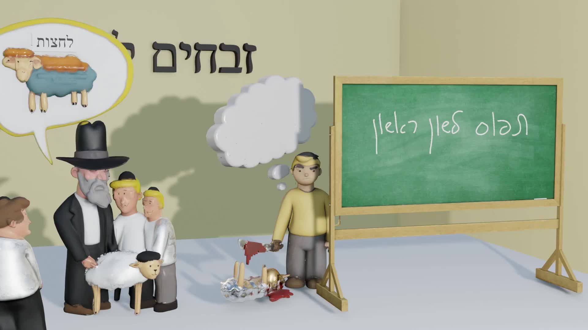 Rava challenged Abaye from our Mishnah, where one had two intents during shechitah (חוץ לזמנו and חוץ למקומו), which parallels a case of "לחצות", since the intents can be applied to different כזיתים and do not indicate a retraction. Still, Rebbe Yehudah holds that we follow only his first מחשבה and it is full פיגול, and not considered mixed with the מחשבה of חוץ למקומו!? Abaye responded: do you think אינה לשחיטה אלא לבסוף – shechitah is only [considered shechitah] at the end of the act, in which case both מחשבות would take effect simultaneously? It is not; rather, ישנה לשחיטה מתחילה ועד סוף – shechitah is [considered shechitah] from the beginning until the end. Our Mishnah’s case is where he said he is cutting the first סימן with an intent of חוץ לזמנו, and the second סימן for חוץ למקומו. Because the two מחשבות take effect separately, Rebbe Yehudah holds we follow the first מחשבה. Abaye explains a parallel machlokes about dual מחשבות by מנחות to be where he burned the קומץ with an intent of חוץ לזמנו, and burned the לבונה – frankincense with an intent of חוץ למקומו.