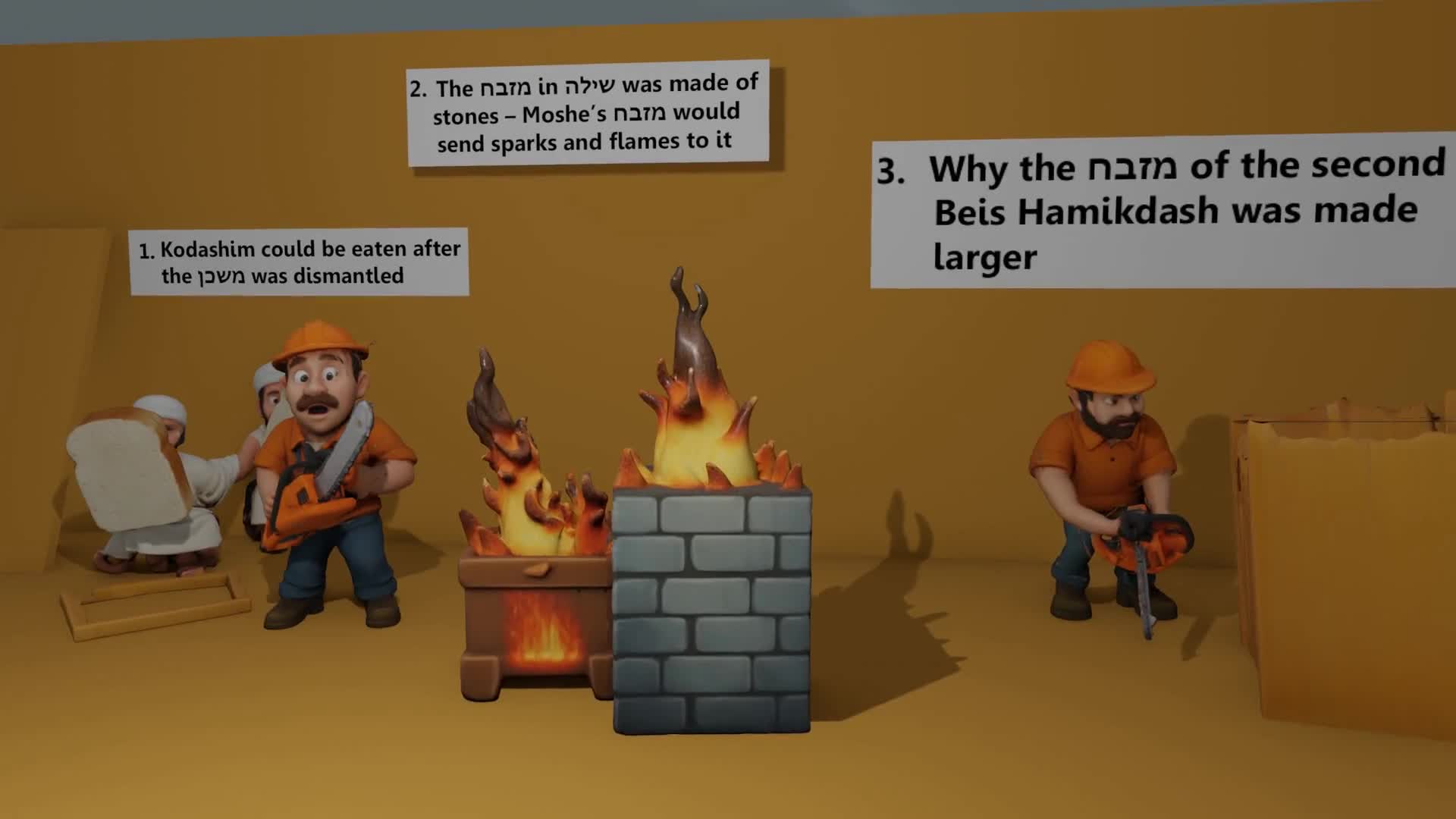 Rav Huna said in Rav’s name: מזבח של שילה של אבנים היה – the מזבח in Shiloh was made of stones, as Rebbe Elazar ben Yaakov darshened: the Torah mentions “stones” three times regarding a מזבח, alluding to three מזבחות made of stone: in שילה, in נב and גבעון, and in the Beis Hamikdash. This is challenged from a Baraisa teaching: לא נסתלקה מעל מזבח הנחושת אלא בימי שלמה – the fire which descended from Heaven did not depart from the Copper Mizbeiach until the days of Shlomo, when the fire went instead onto Shlomo’s מזבח, and the fire which descended in Shlomo’s time did not depart until Menashe removed it. If the מזבח in שילה was of stones, then the Heavenly fire left Moshe’s מזבח centuries before Shlomo’s מזבח was built!? The Gemara first answers that this question is a machlokes Tannaim. Rav Nachman bar Yitzchak answers that the Baraisa only means לא נסתלקה לבטלה – [the Heavenly fire] did not depart completely [from the מזבח]. The Rabbis explained this means that Moshe’s מזבח would send sparks and flames to the מזבח of שילה. Rav Pappa says: אושפיזא הוה נקט – [the fire] acted as a guest, alternating between being on Moshe’s מזבח and שילה’s מזבח.